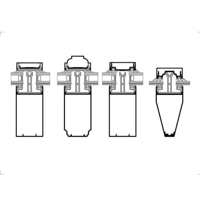 • The Aliver 2000+ system is compatible with multi-chamber polycarbonate infills and insulated glass (single, single-chamber, and double-chamber insulated glass)
